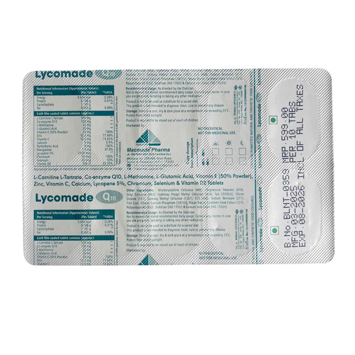 - Tab. Lycomade-Q10 is a nutraceutical supplement, not a medicine.